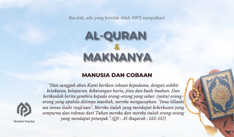 Artinya : Dan sungguh akan Kami berikan cobaan kepadamu, dengan sedikit ketakutan, kelaparan, kekurangan harta, jiwa dan buah-buahan. Dan berikanlah berita gembira kepada orang-orang yang sabar. (yaitu) orang-orang yang apabila ditimpa musibah, mereka mengucapkan: “Inna lillaahi wa innaa ilaihi raaji’uun”. Mereka itulah yang mendapat keberkatan yang sempurna dan rahmat dari Tuhan mereka dan mereka itulah orang-orang yang mendapat petunjuk. (QS : Al-Baqarah : 155-157)