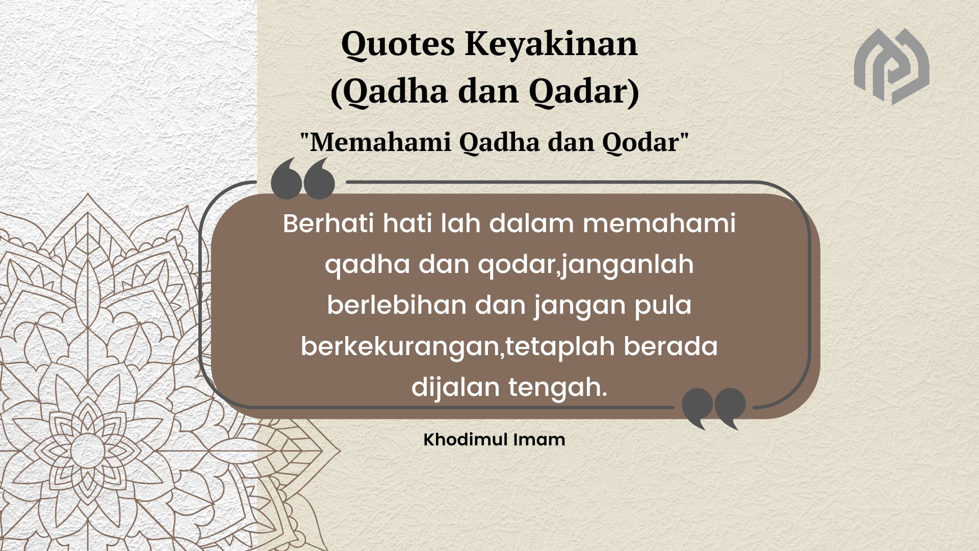 Berhati hati lah dalam memahami qadha dan qodar,janganlah berlebihan dan jangan pula berkekurangan,tetaplah berada dijalan tengah.