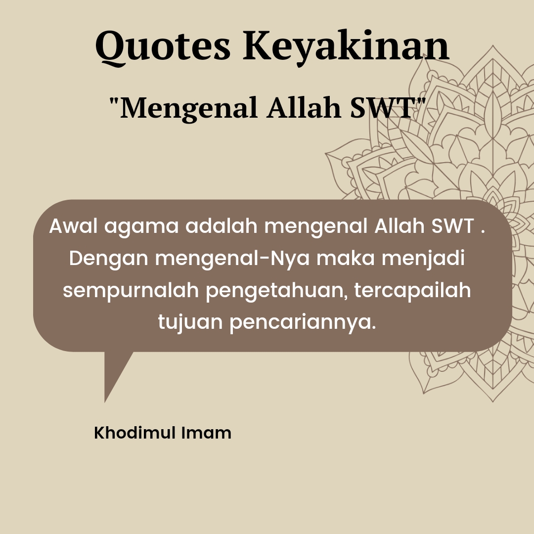 Awal agama adalah mengenal Allah SWT. Dengan mengenal-Nya maka menjadi sempurnalah pengetahuan, tercapailah tujuan pencariannya.